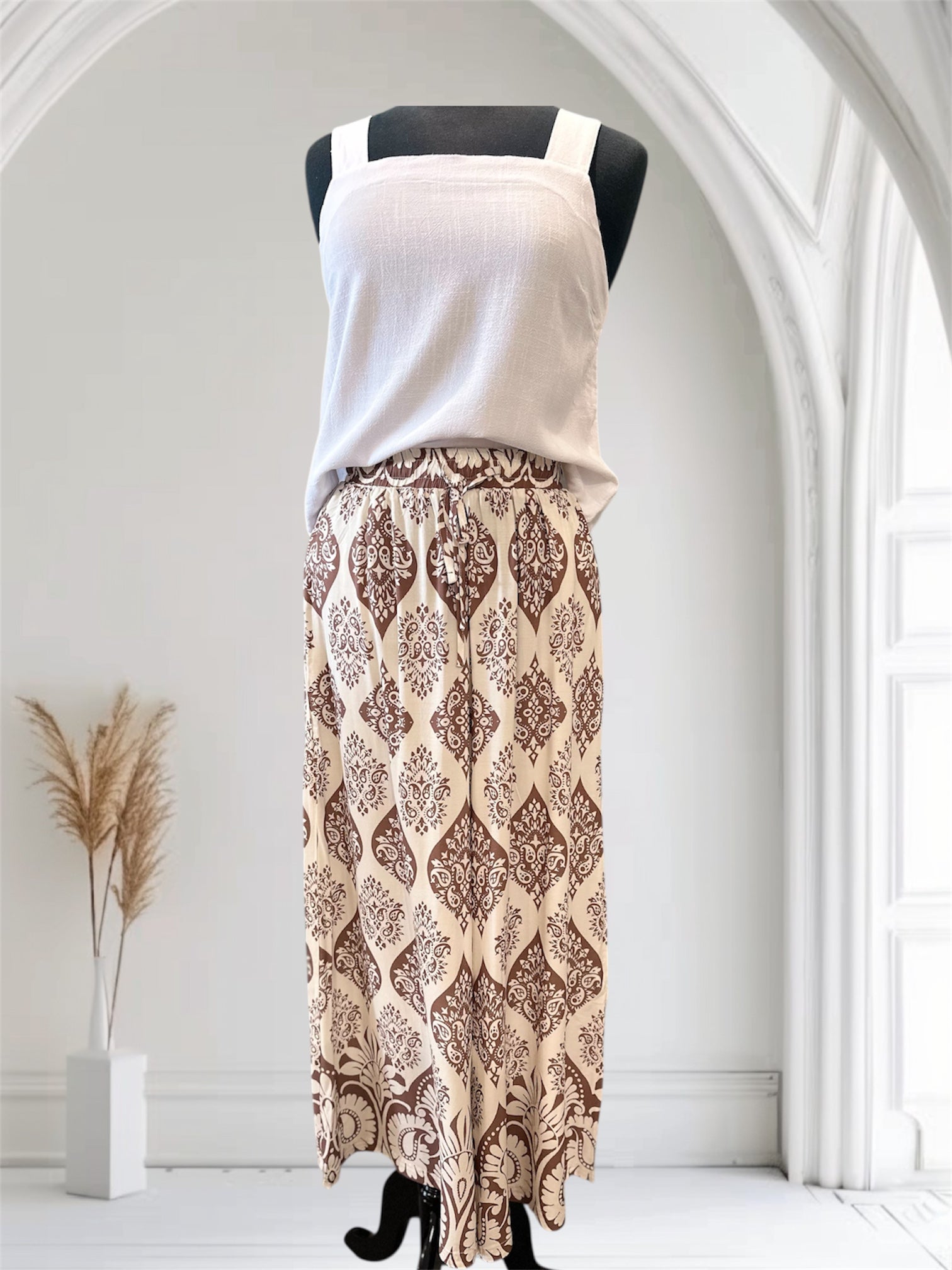 Cream pant with light chocolate print