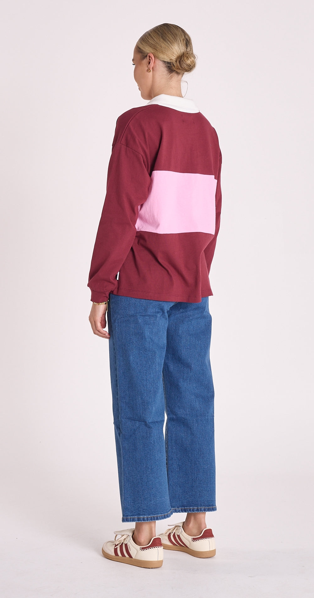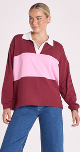 Meet the long sleeve rugby top that will be an absolute essential in your casual wardrobe… the incredible ‘Carson Top’ in Maroon! Wear her as is or layer her up for additional warmth on those cooler days, the options are endless with this versatile piece. Features include, white collar, v neckline, pink stripe through middle, long sleeves, ribbed sleeve cuffs, all finished in a super stunning maroon fabrication. Pair this style with the 'Sarah Jean' in Dark Blue for a simple yet stylish look.