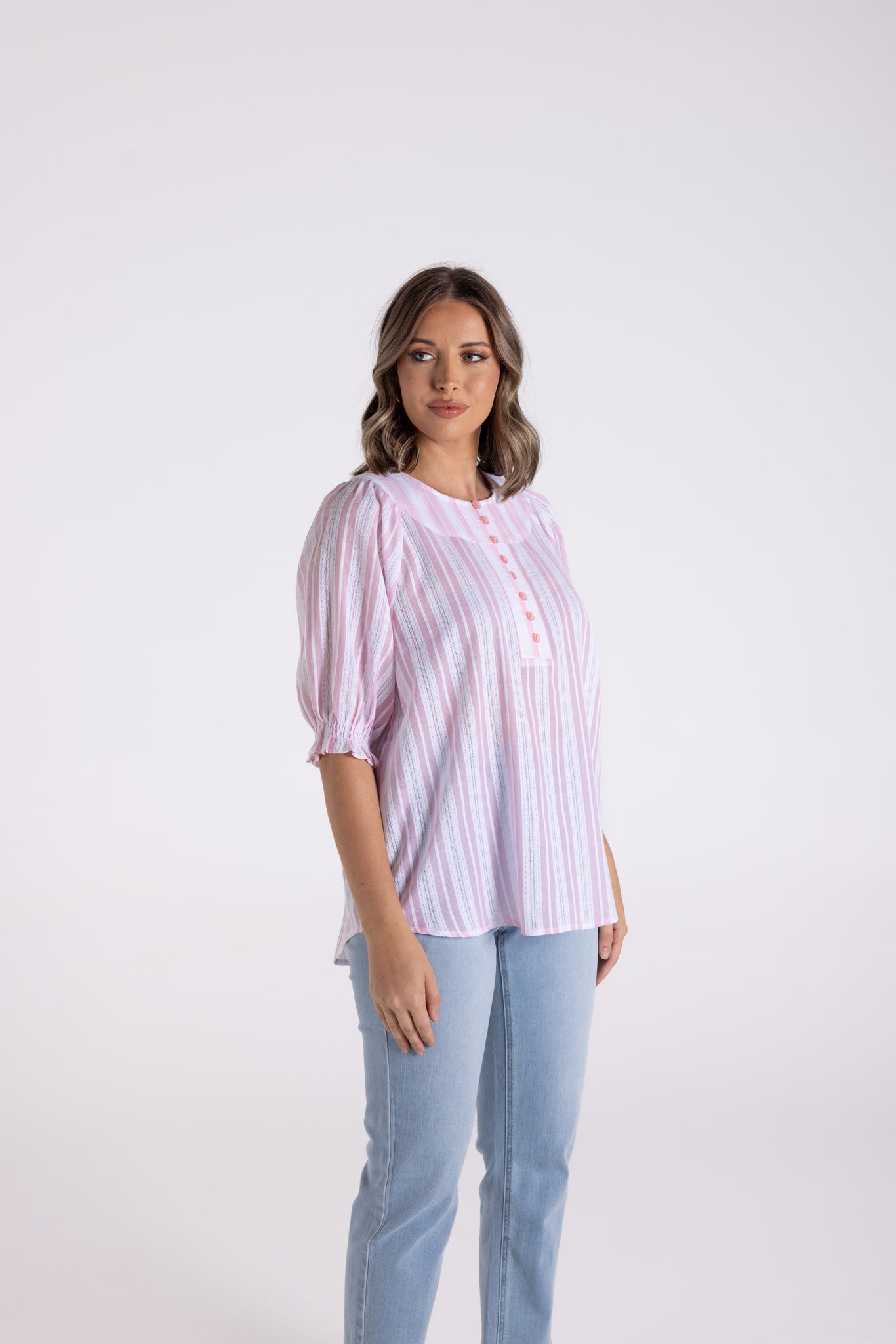 Cotton Striped Lace Top - Pink/White