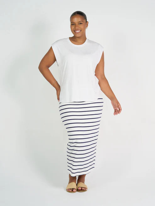 Elevate your every day style with our new Donna Cap Sleeve Bamboo Tank. The wide cut provides more coverage making it in between a tank and a tee. Featuring a straight fit through the body to the hip, makes this a flattering style for those with a little tummy or curves.