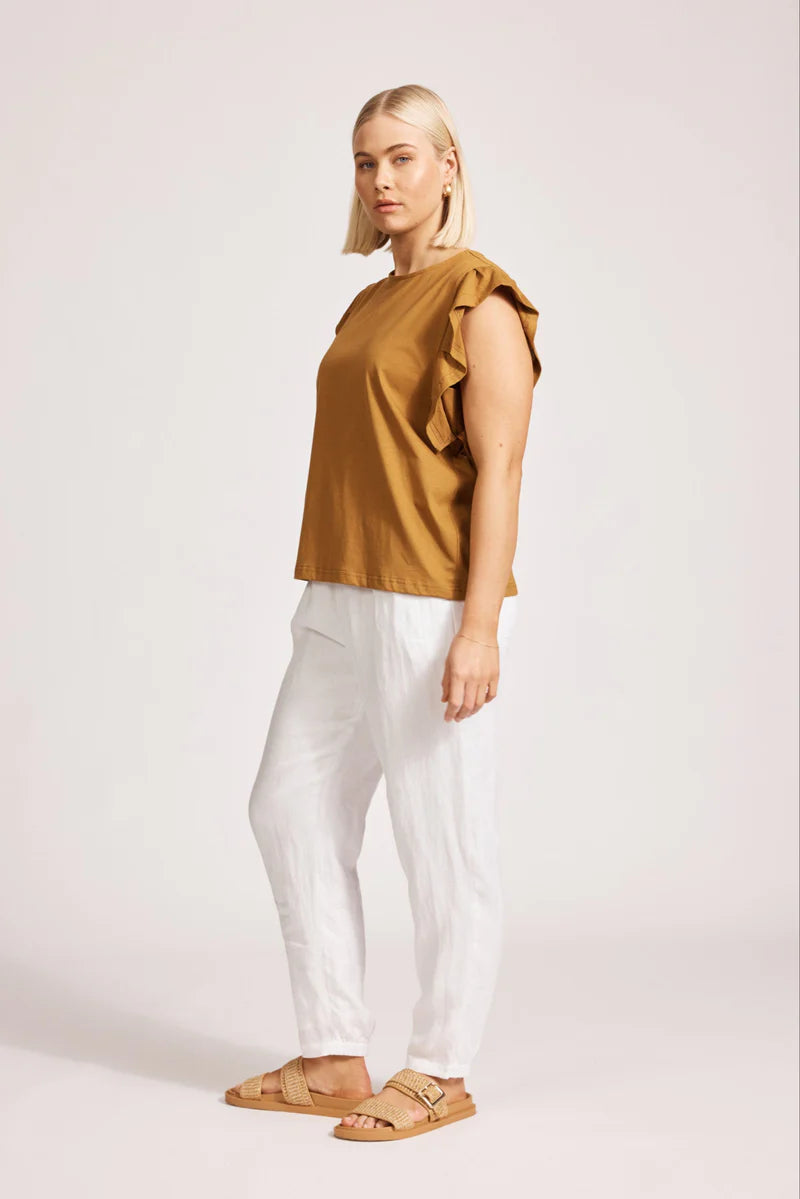 A simple yet feminine summer essential. Crafted from 100% cotton for softness and breathability. Features a classic tank silhouette with delicate frill detail at the sleeves and subtle brand detail at the back neck.
