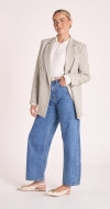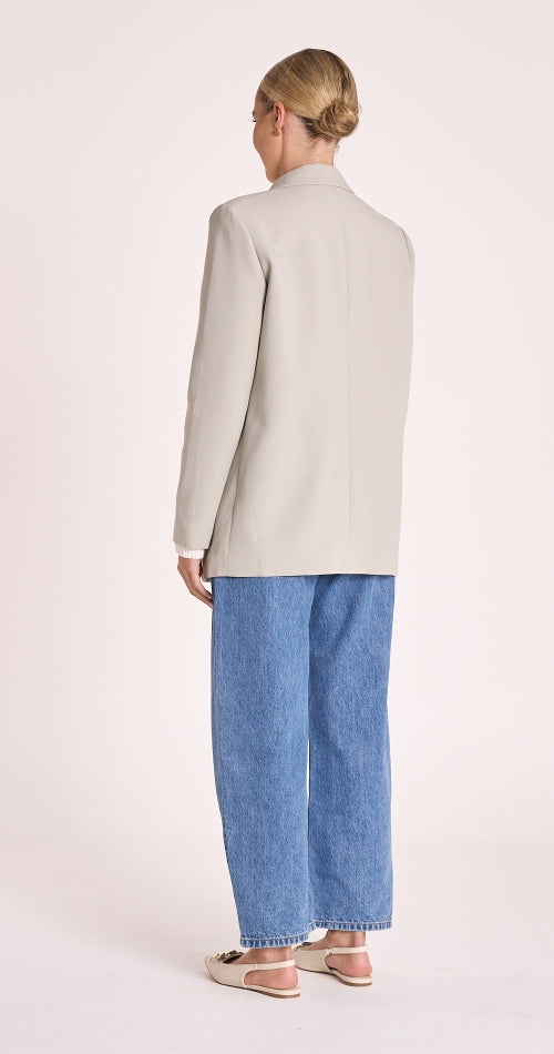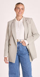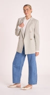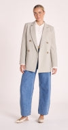 Features include, double breasted styling, collar and lapel, twin front pockets, faux left breast pocket, fully lined jacket, all finished in a stunning navy fabrication. Pair this style with our ‘Noah Wide Leg Pant' for a chic statement look.