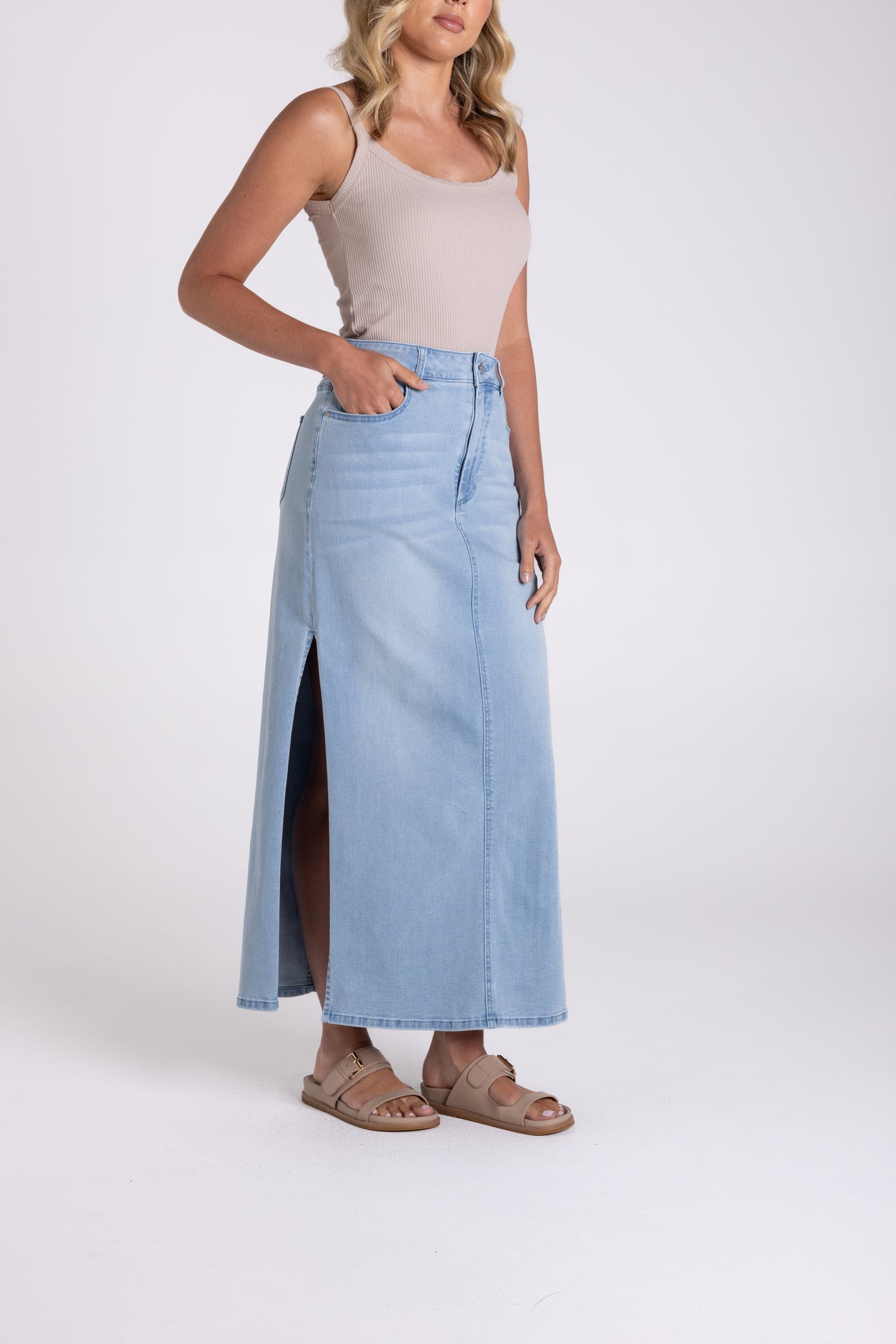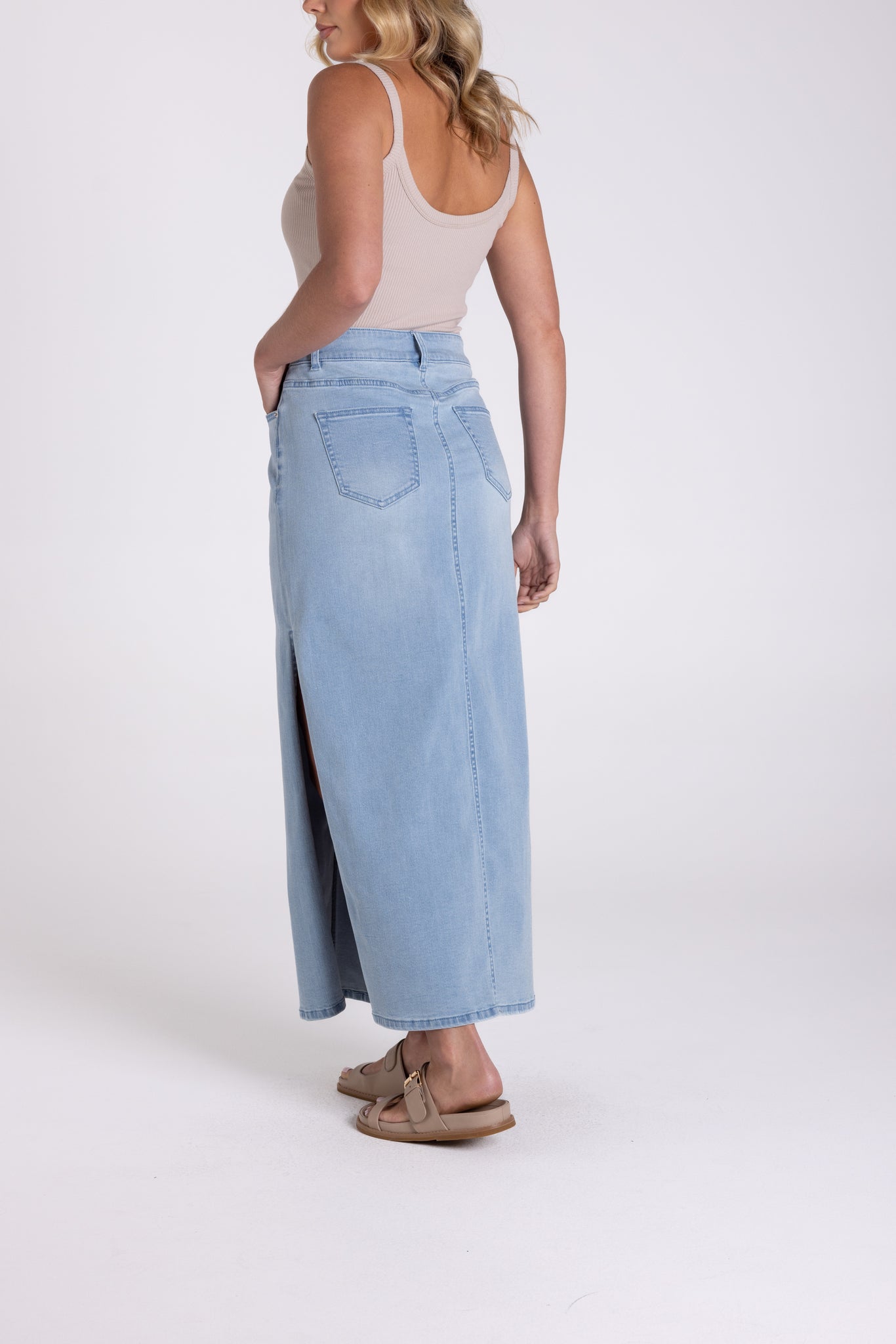 Jean Midi Skirt - Side Splits