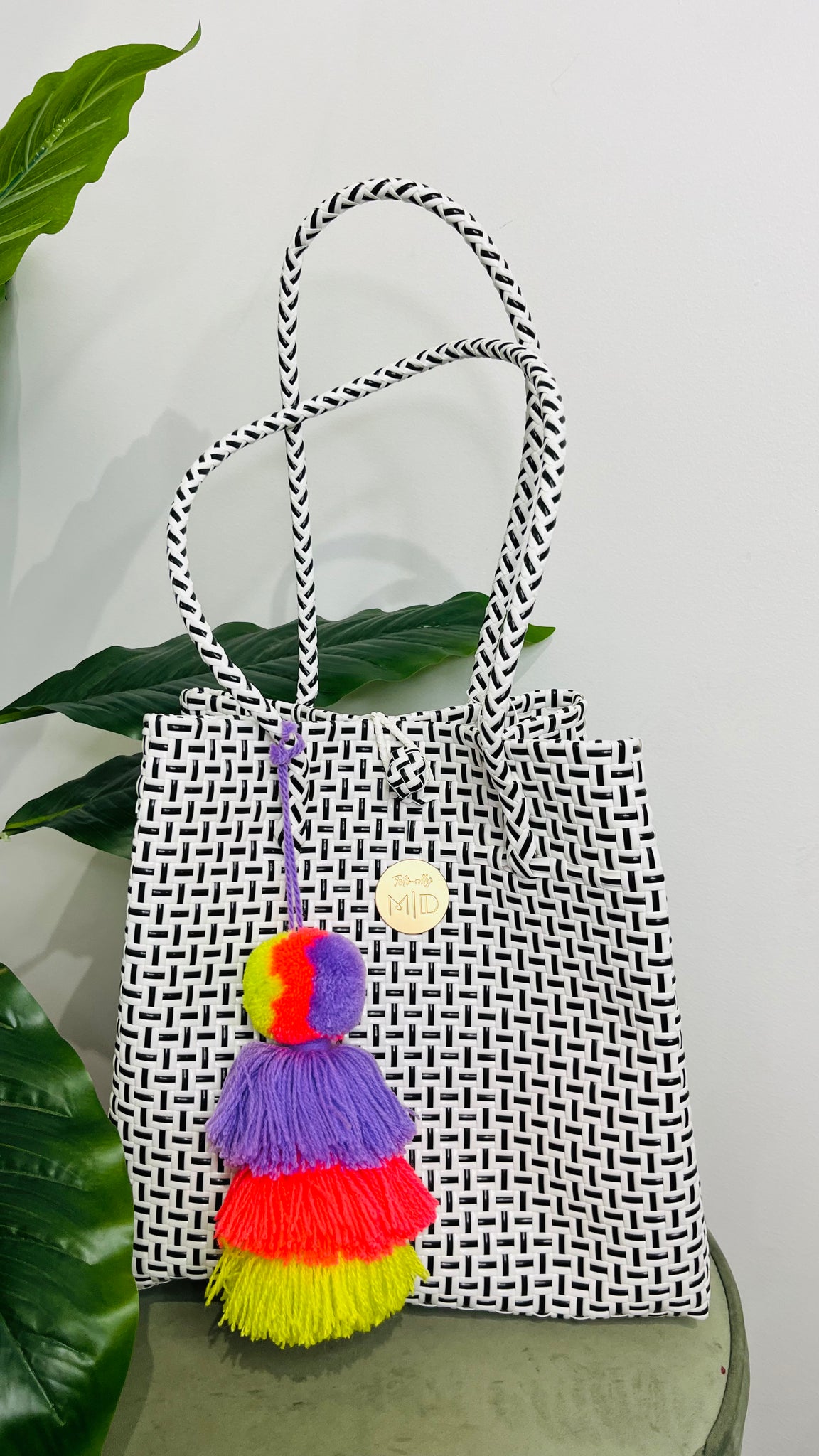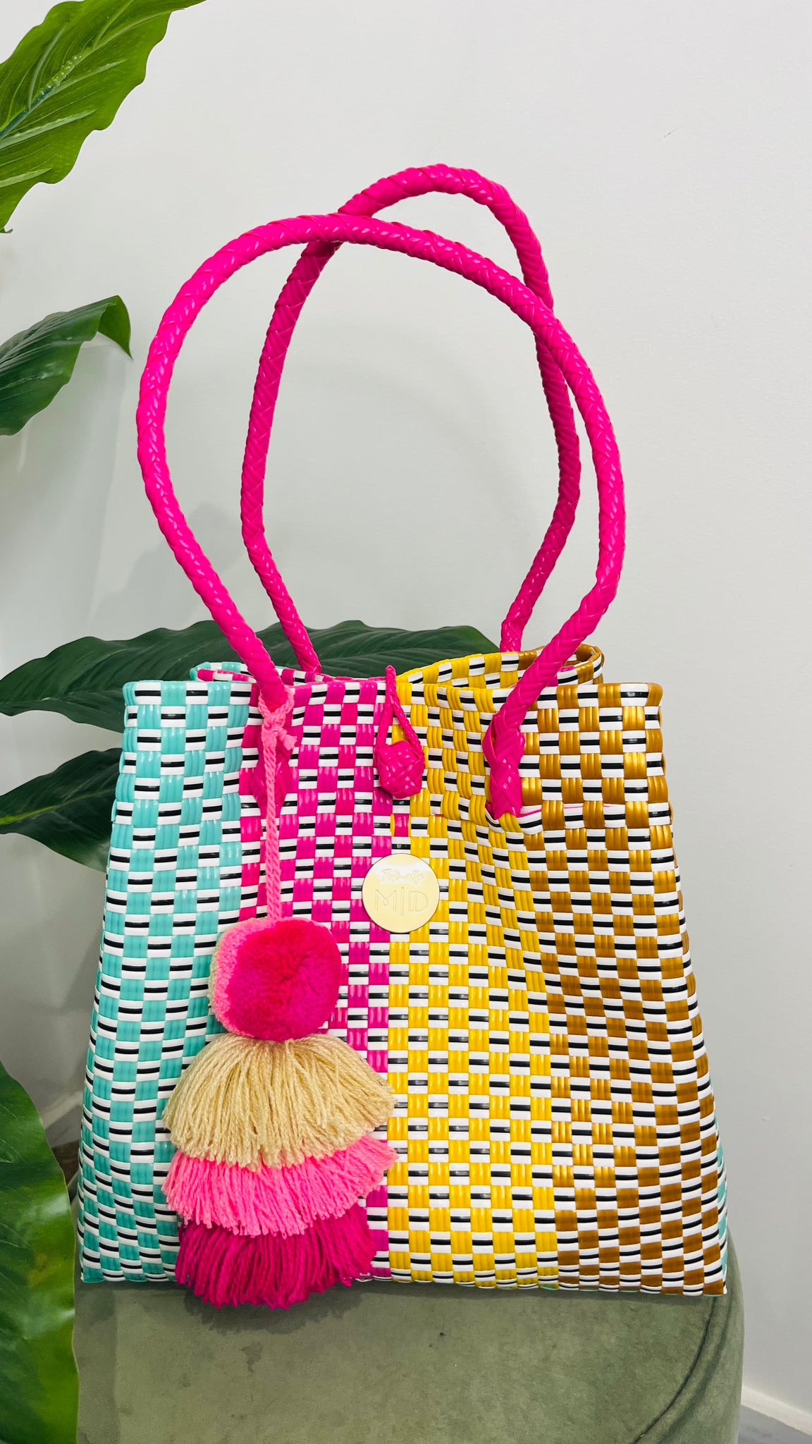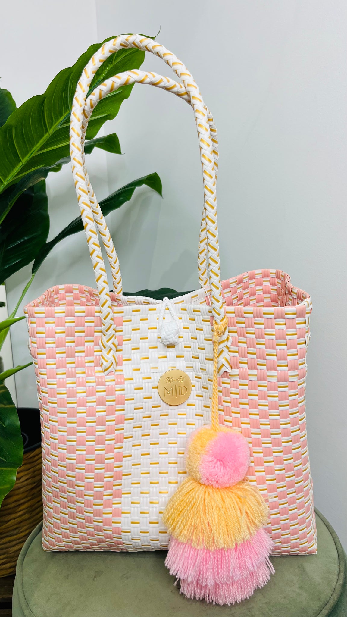 Each of our recycled plastic baskets comes with a complimentary pom pom or tassel – a playful finishing touch to match your basket’s unique style! Colours and designs will vary, making every basket a one-of-a-kind delight. Just our way of adding a little extra joy to your day 💛