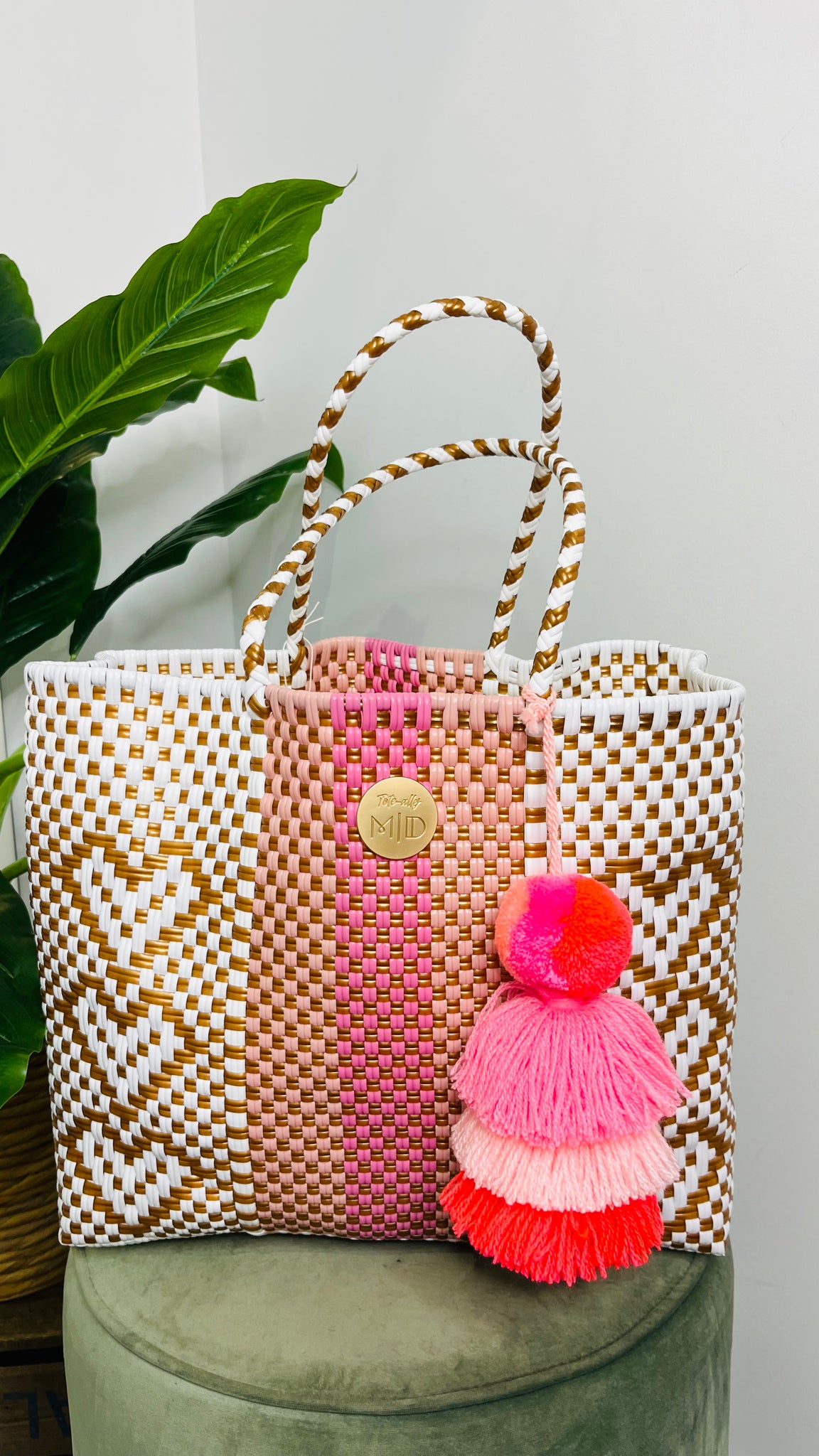 Each of our recycled plastic baskets comes with a complimentary pom pom or tassel – a playful finishing touch to match your basket’s unique style! Colours and designs will vary, making every basket a one-of-a-kind delight. Just our way of adding a little extra joy to your day 💛