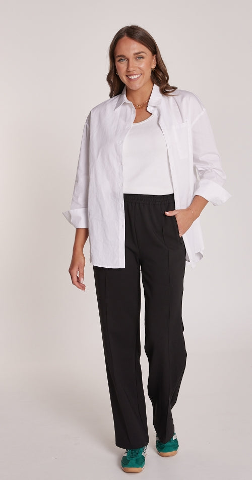 Where cool and comfortable combine, our incredible ‘Noah Wide Pant’ is the effortless and stylish twist on the classic track pant you didn’t know you needed!! Features include, elasticated waist, wide leg, side pockets with zips, pintuck detail on centre front leg, relaxed styling all finished in a beautiful cotton blend fabrication.