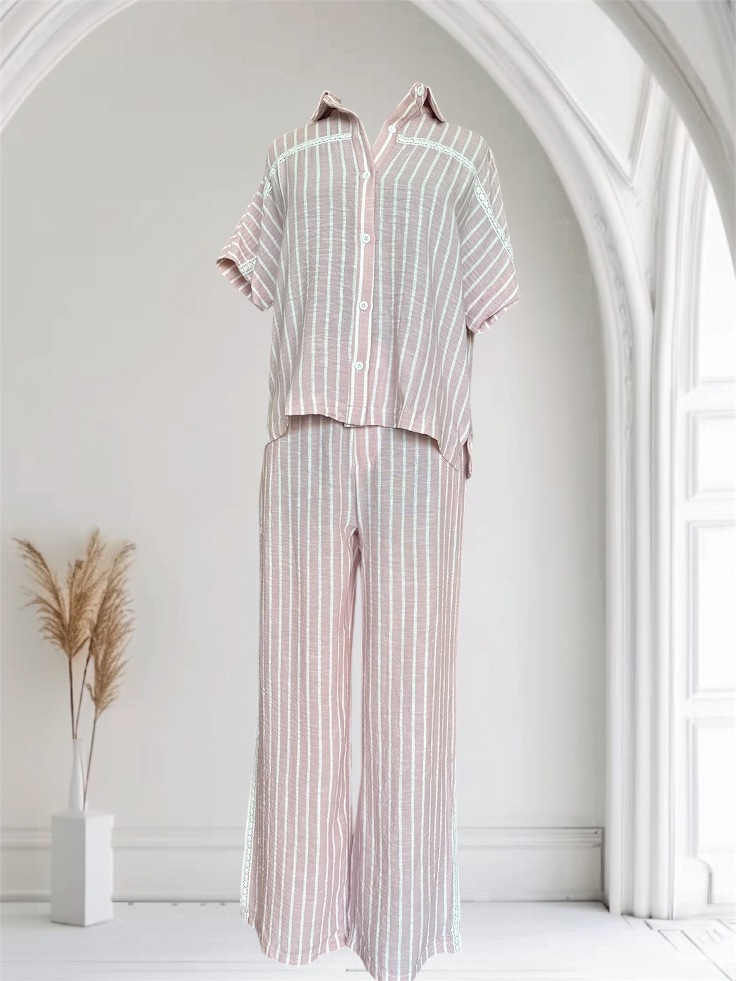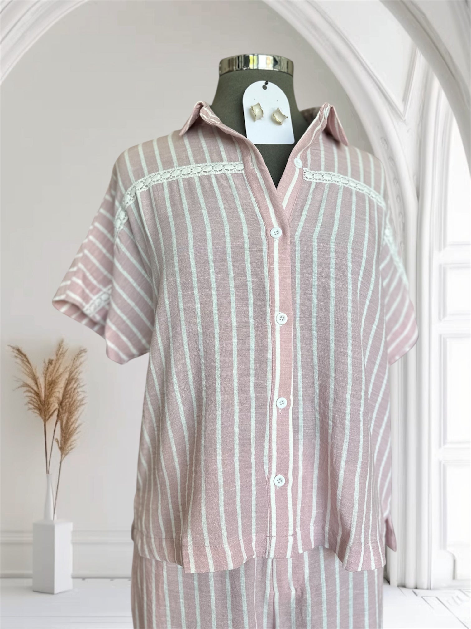 Roz Stripe Crochet Detail Shirt - Pink