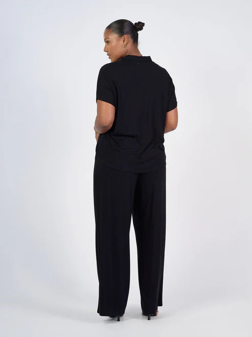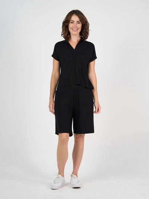 Our new go-to polo! Perfect for travelling, relaxing AND golf days! For those that love our best selling Camila Top, this is the same cut through the body and arm just a different neckline. This is a lovely and stretchy style made with our signature, luxuriously soft bamboo fabric. Featuring a v-neck and collar, short sleeves and relaxed box fit with gentle curved hem at back. You are going to LOVE this one! This top offers casual style with a touch of sophistication. This versatile top is made to flatter not too loose and not too tight.